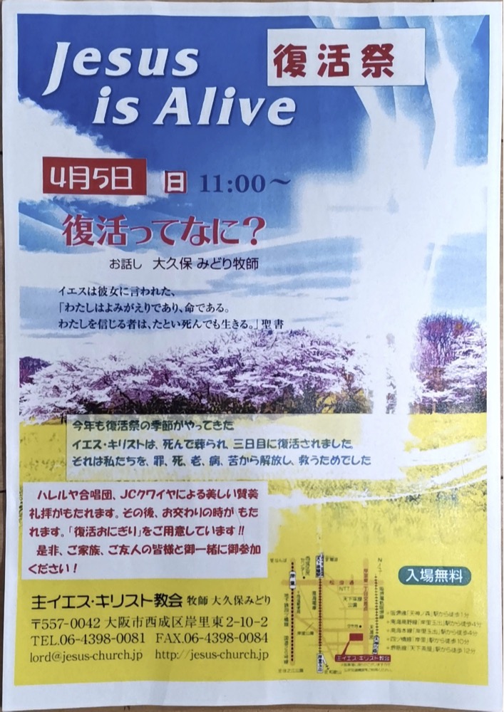 ホームお知らせ 復活祭のご案内 4月5日11:00〜 2026年3月22日 コメントを残す コメントをキャンセルメールアドレスが公開されることはありません。 ※ が付いている欄は必須項目ですコメント ※ 名前 ※ メール ※ サイト 次回のコメントで使用するためブラウザーに自分の名前、メールアドレス、サイトを保存する。